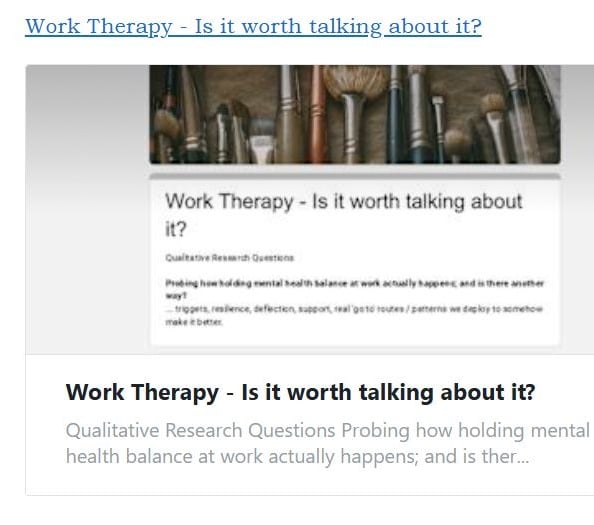 It will be then encapsulated in the book Work Therapy. Why is it worth talking about? to be published towards end of 2026.
